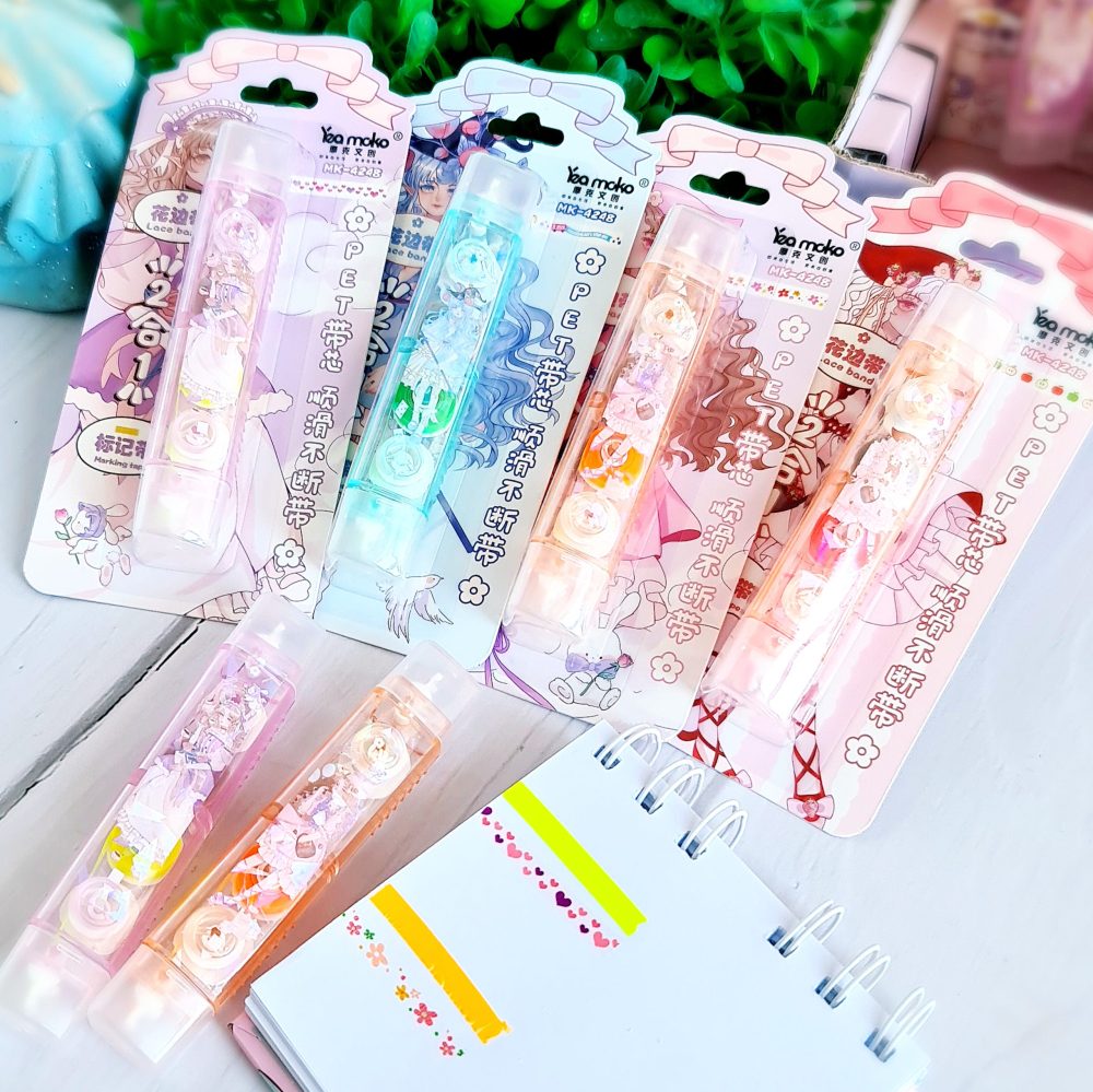 هایلایتر زرد و قلب ,هایلایتر سبز و ستاره اتوبوس ,هایلایتر صورتی و سیب ,هایلایتر نارنجی و گل |